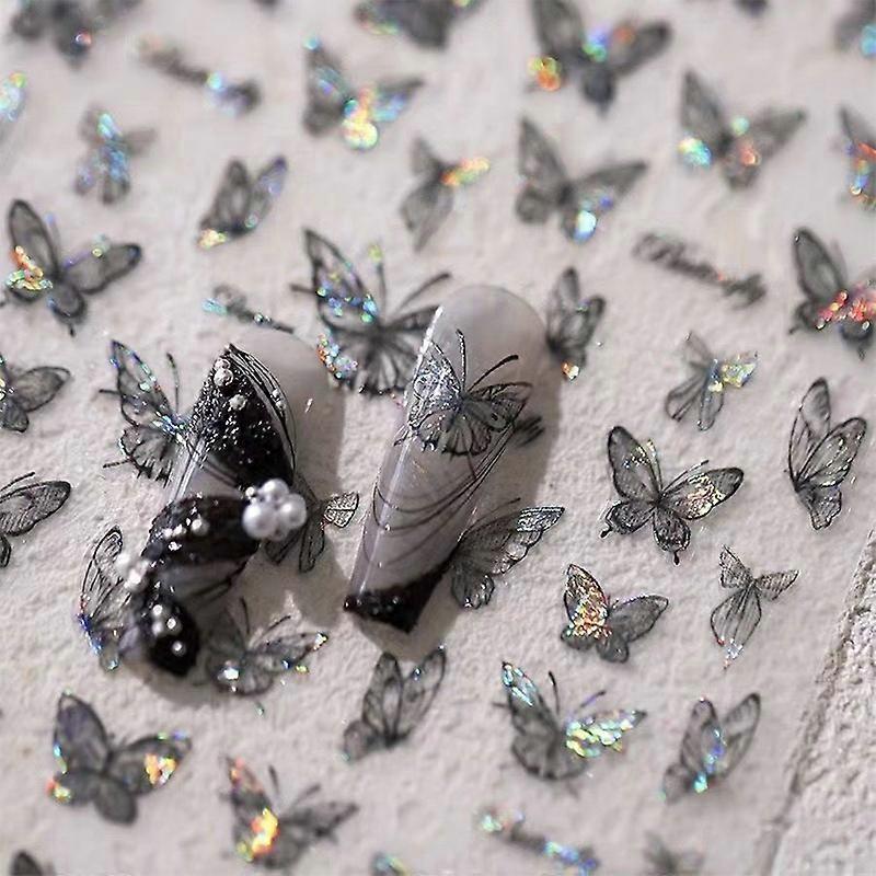 Dream Crystal Ambilight Black Butterfly Nail Art Sticker 3d High Quality Adhesive Nail Decoration Nail Art Sticker