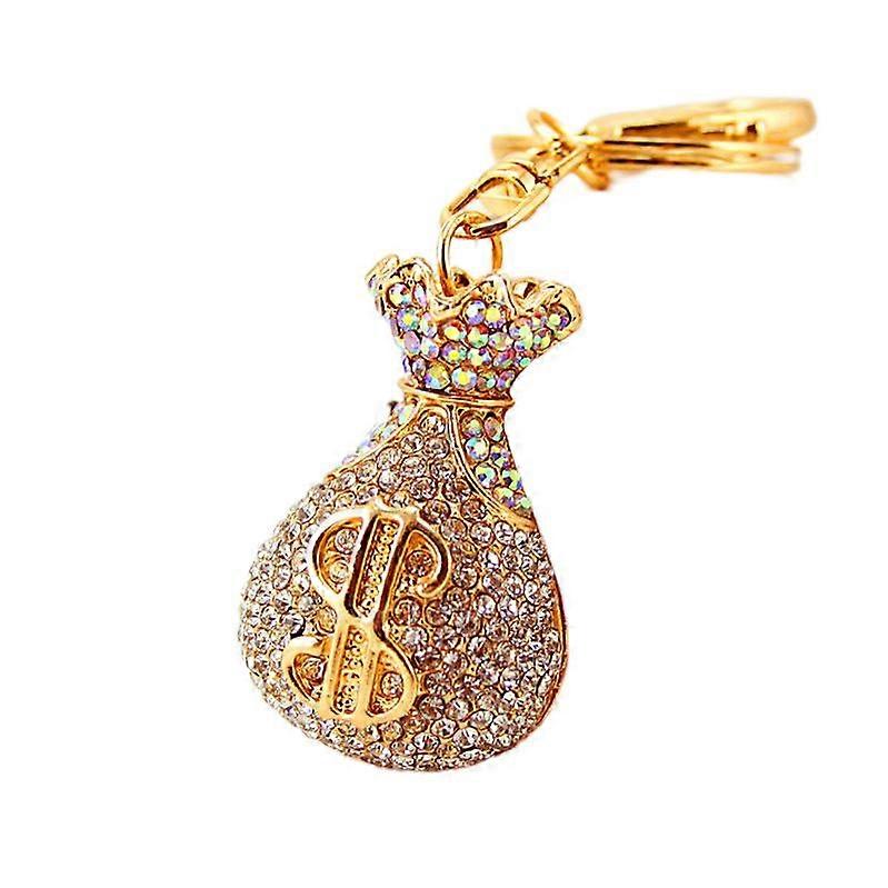 Dollar Symbol Shape Keychain Keyring Sparkling Crystal Rhinestones Key Chain Creative Gifts Accessories(white2PCS)