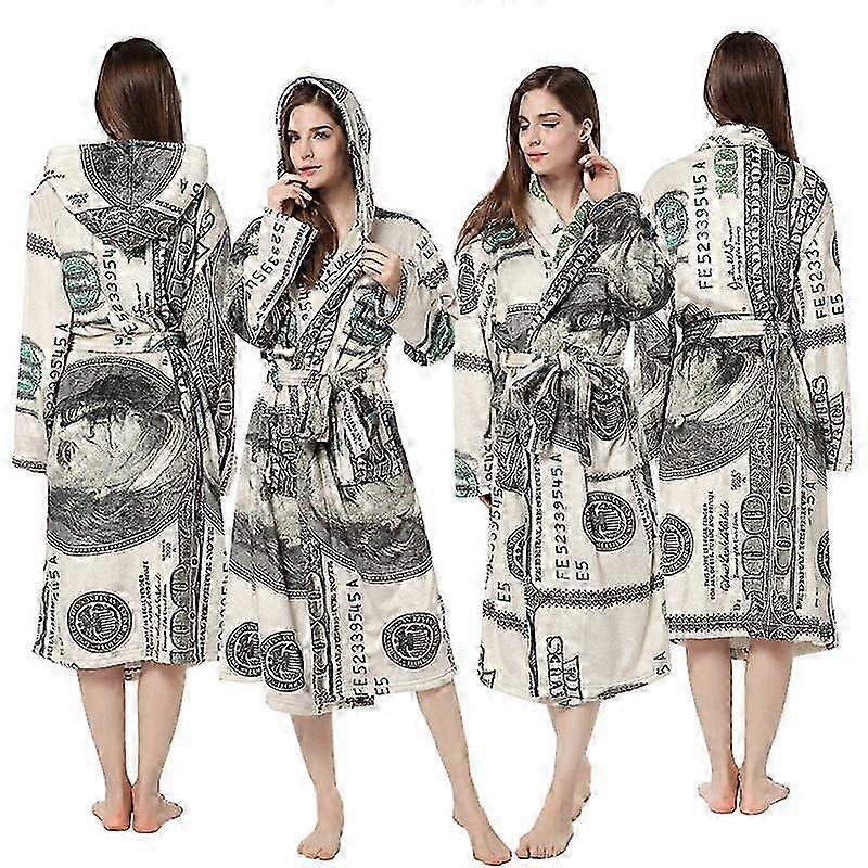 Dollar Printed Hooded Robe Pajamas for Couples Soft Flannel Homewear Nightgown