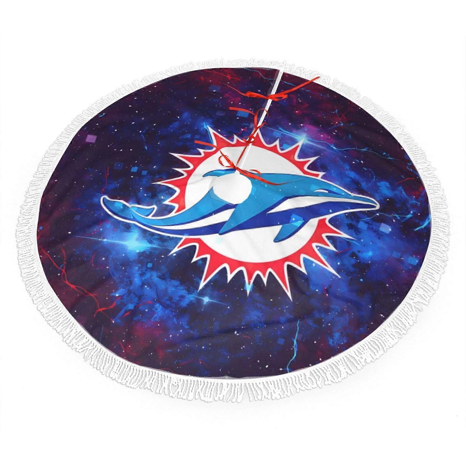 Dolphins Christmas Fringe Tree Skirt, Compatible with NFL Fan Decor, 30" 36" 48", Soft Plush, Easy Setup, Great Gift