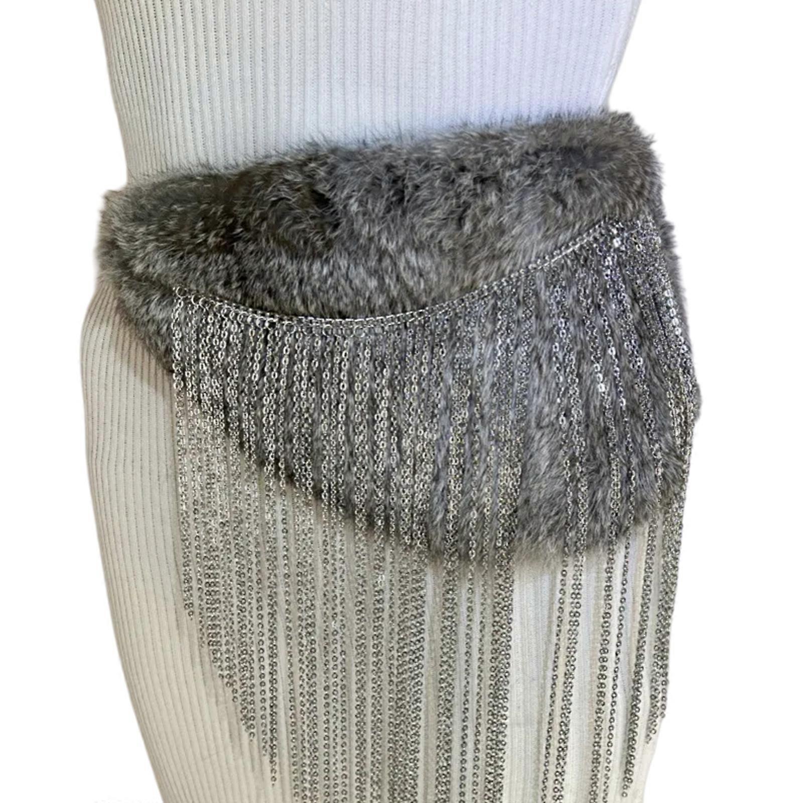 Tassels Waist Chain for Dress Plush Patchworked Chain Belt Belly Chain Eye Catching Body Chain Winter Wear Waist Charm Gray