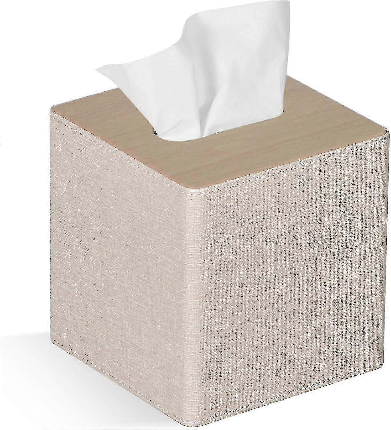 Square PU Leather Tissue Box Cover for Dresser Bathroom Decor - Beige