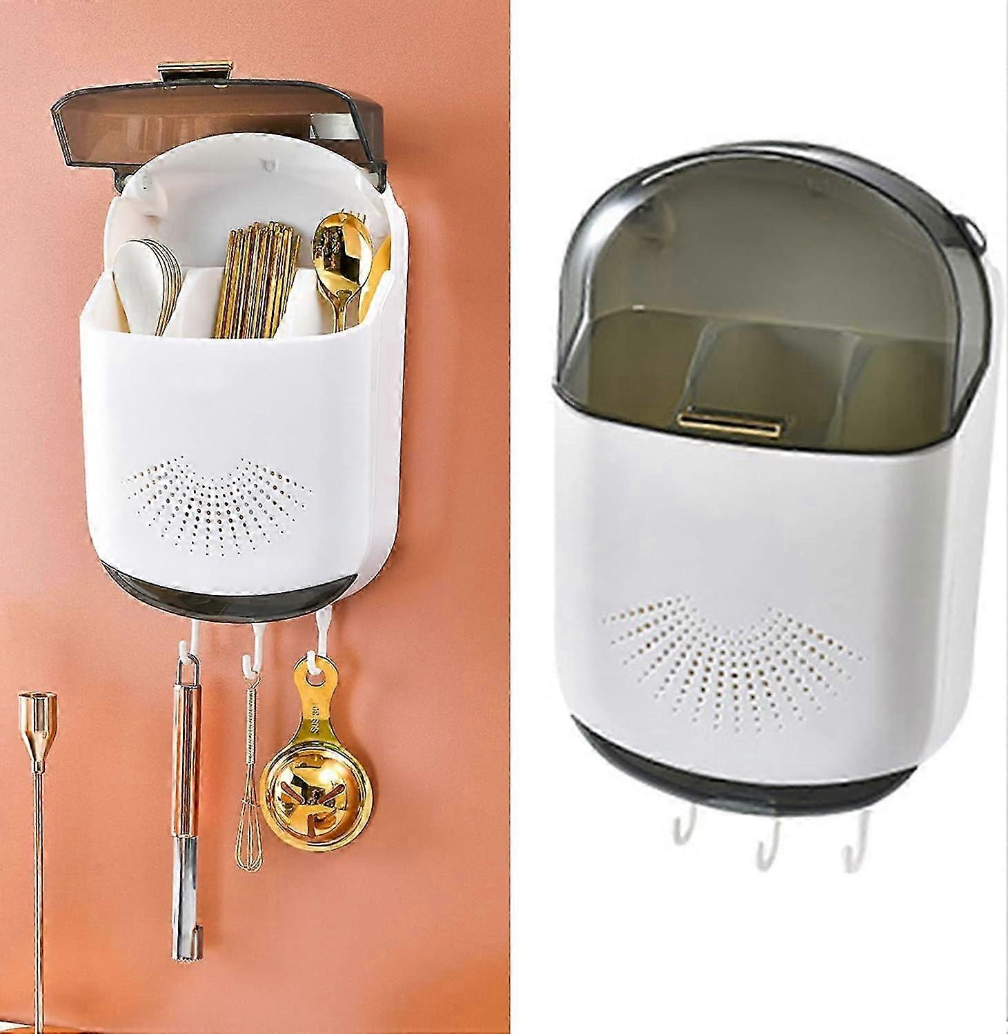 Wall Mounted Chopsticks Holder with Drain Tray, 3 Compartments Large Capacity Storage Box (White)