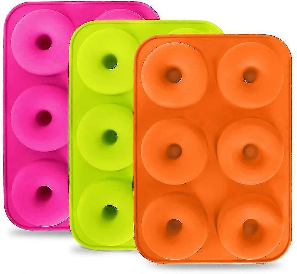Premium Quality, Non-Stick Pans: Our donut molds are made from food-grade silicone and are BPA-free, so you can rest assured that our full-size donut pans are the safest silicone pans on the market.Heat Resistance: Microwave, oven, freezer, and dishwasher safe; donut pans last a lifetime. No more metal to rustEASY TO CLEAN: Forget the hassle of cleaning the pan, just put the doughnut molds in the dishwasher after baking; very easy to clean, and the material won't let any dough type stuff get stuck in the holes, even if Yes, you can also easily clean with some warm water.FOLDABLE AND FLEXIBLE: The flexibility of the silicone allows the pan to fold without damage, it just unfolds back to its original shape. Easy to store.Endless Possibilities: Our 6-cavity doughnut pan is perfect for baking your favorite recipes, you can make regular doughnuts, chocolate cake doughnuts, gingerbread doughnuts, blueberry doughnuts Great for the whole familyQuantity delivered: 3 piecesProduct color: 3 colorsProduct size: about length 27.5cm*17.5cm