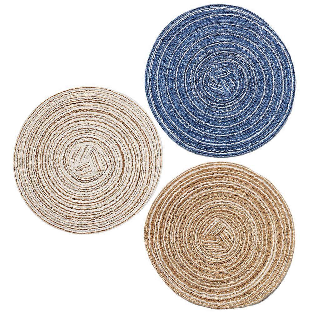 3pcs Soft Fluffy Mini Floor Mats for Dollhouse Decoration & Micro Scene Styling – Beige & Blue