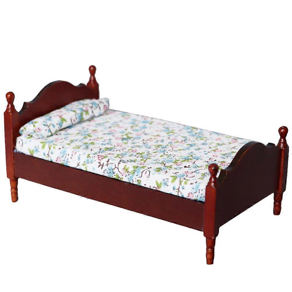 Dollhouse Accessories Bed Mini Bed Model Dark Brown Bedroom Furniture 17x10.1x8.1cm DIY Accessory 1PC