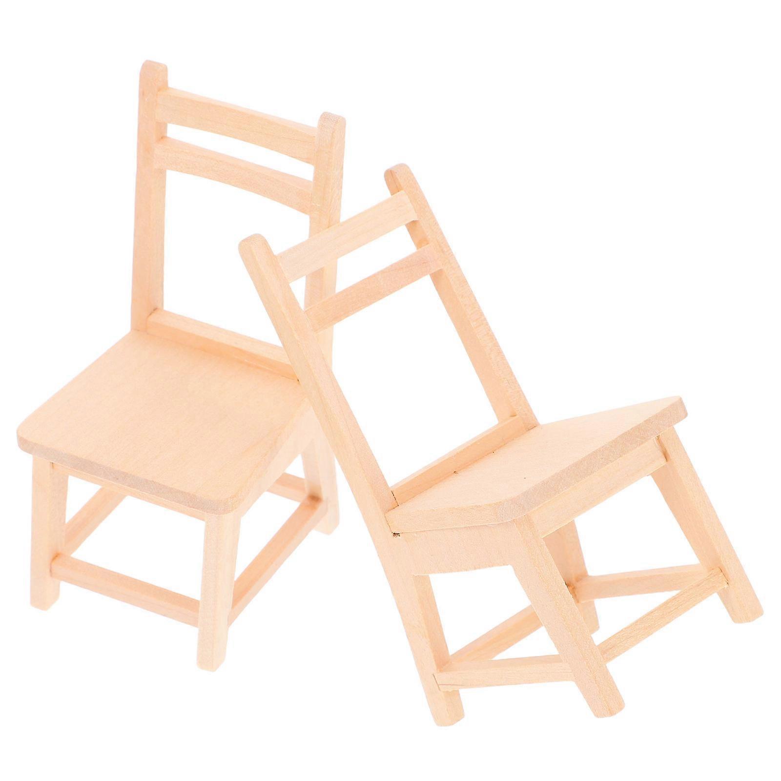 Dollhouse Accessories Mini Chair Thicken Wood Design Beige 9.60x4.80x4.50cm Desktop Ornament 2Pcs