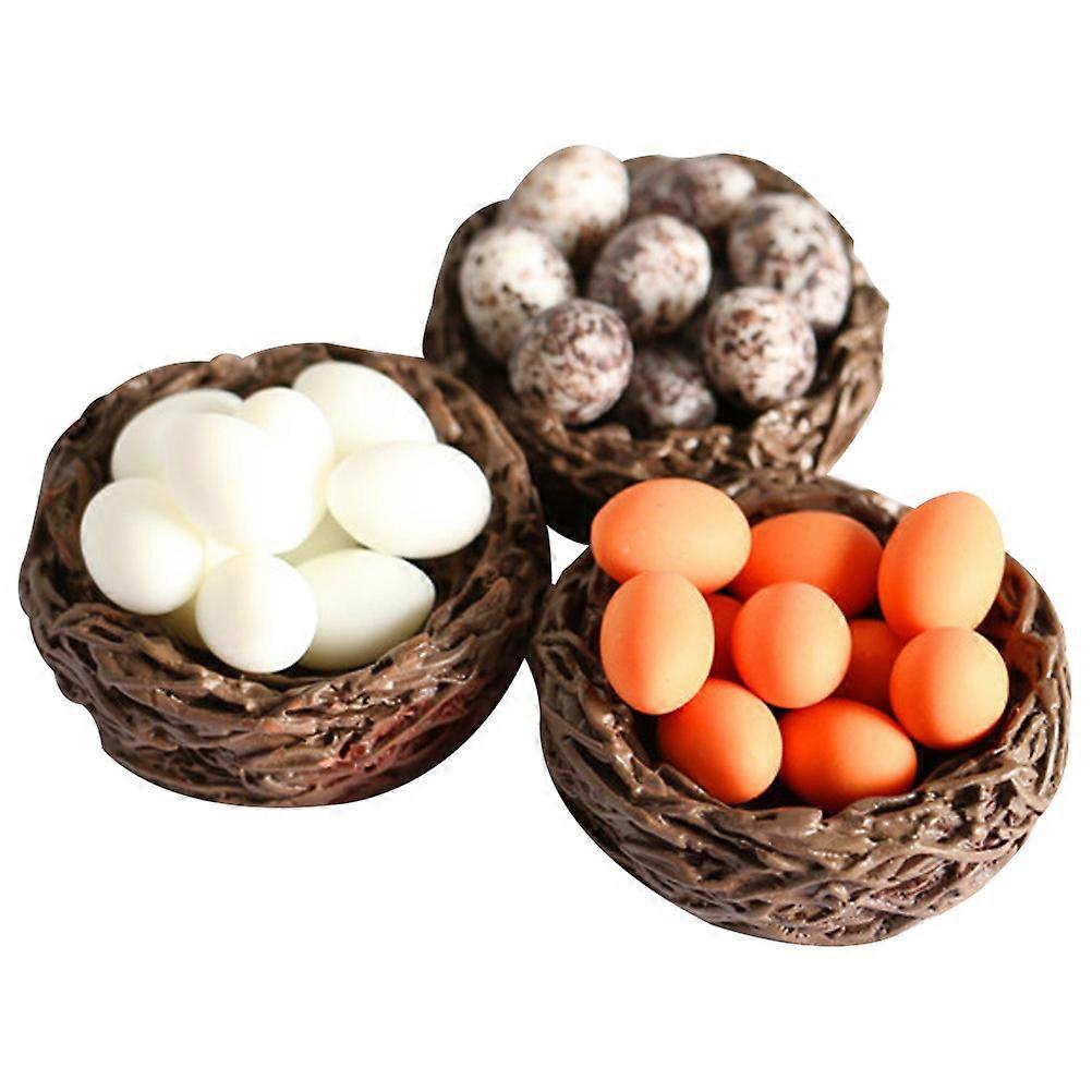 3 Sets Mini Bird Nest with Eggs Resin Ornaments for Dollhouse Easter Decor – Realistic Miniature Garden Accessories for Farm Scene and Home Decoration