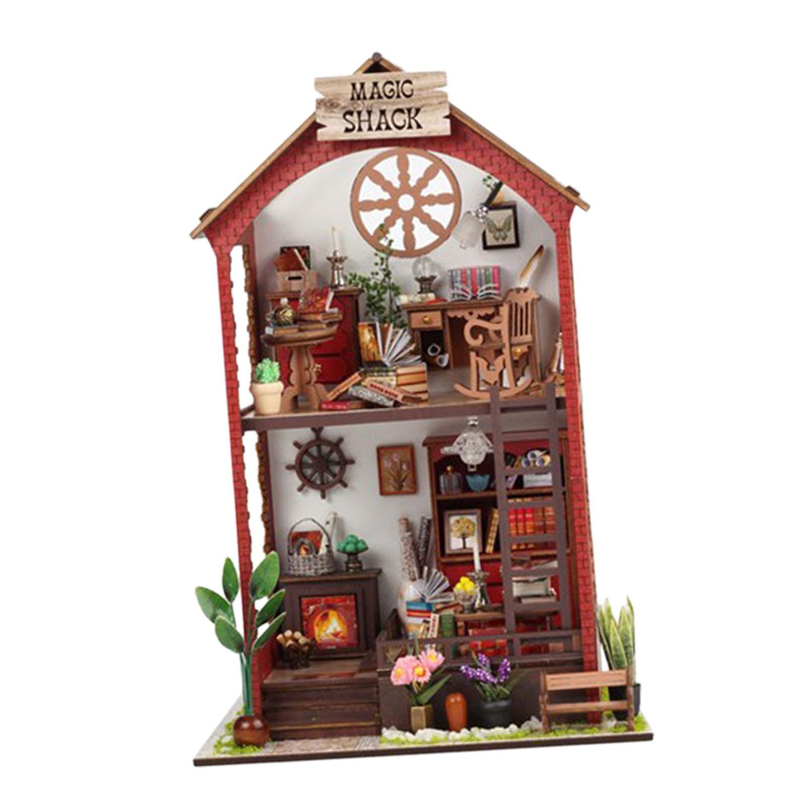 Dollhouse Wood Bookends DIY Miniature Dollhouse Kits with Furniture Wooden Book Stand Puzzle for Birthdays Gift Children Kids