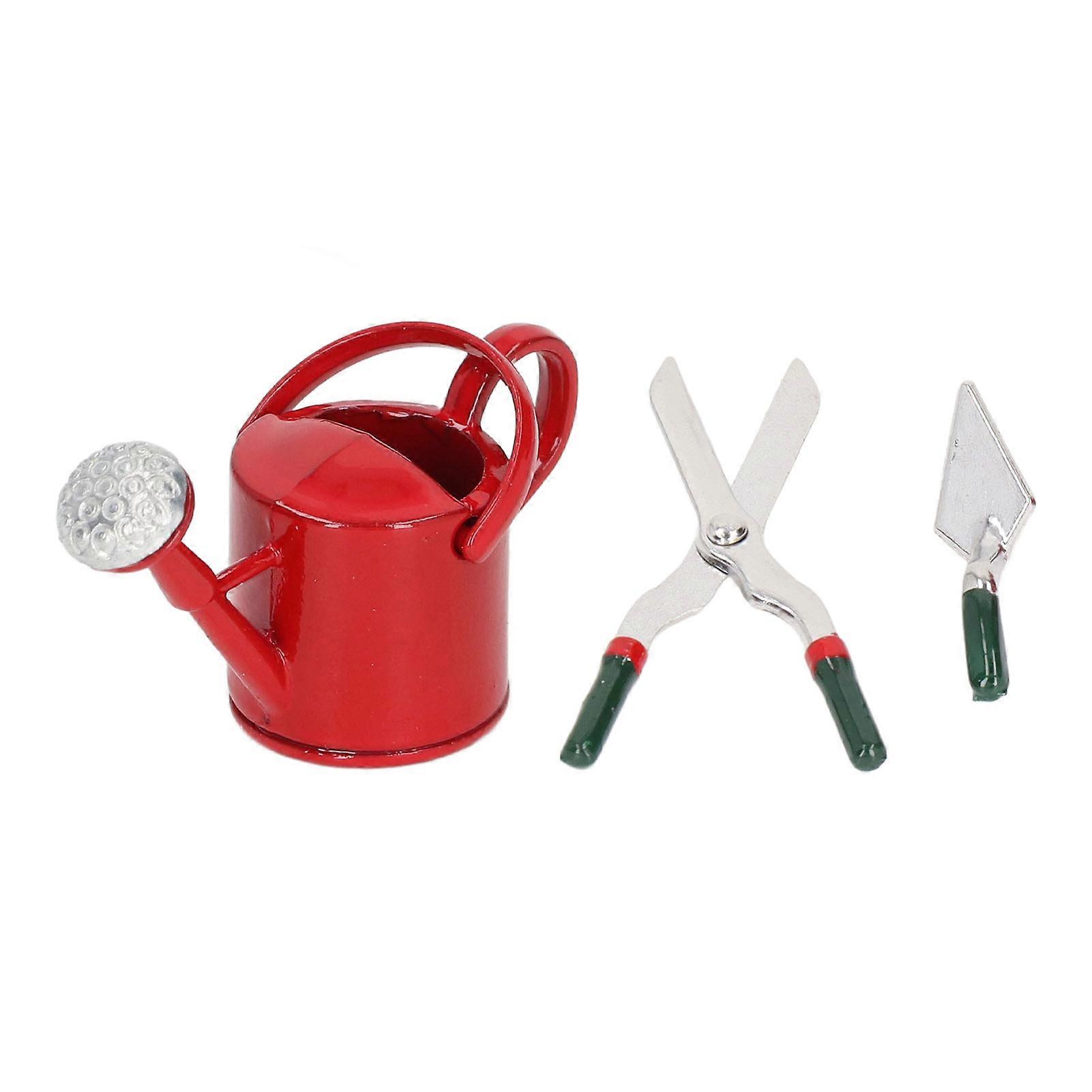 Dollhouse Garden Tool 1:12 Watering Can Spade Scissors Durable Alloy Miniature Gardening Tools for Dollhouse Red