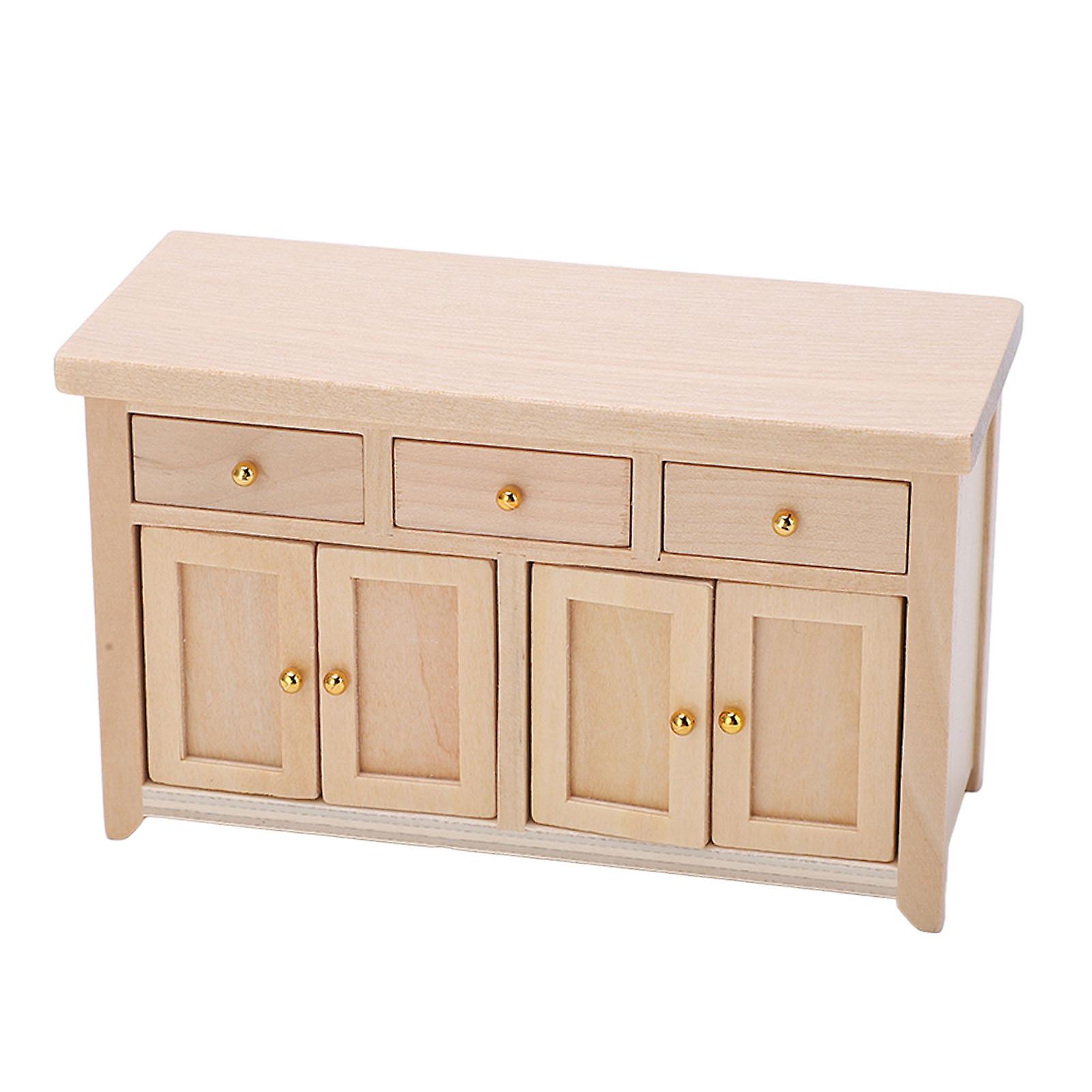 Dollhouse Cabinet 1:12 Scale Living Room Miniature Birch Dollhouse Storage Cabinet Wood Color