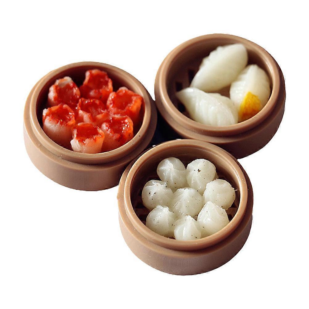 3pcs Mini Steamer Food Models for Dollhouse Scene Decor & Children's Photography Props Small Landscape Accessories