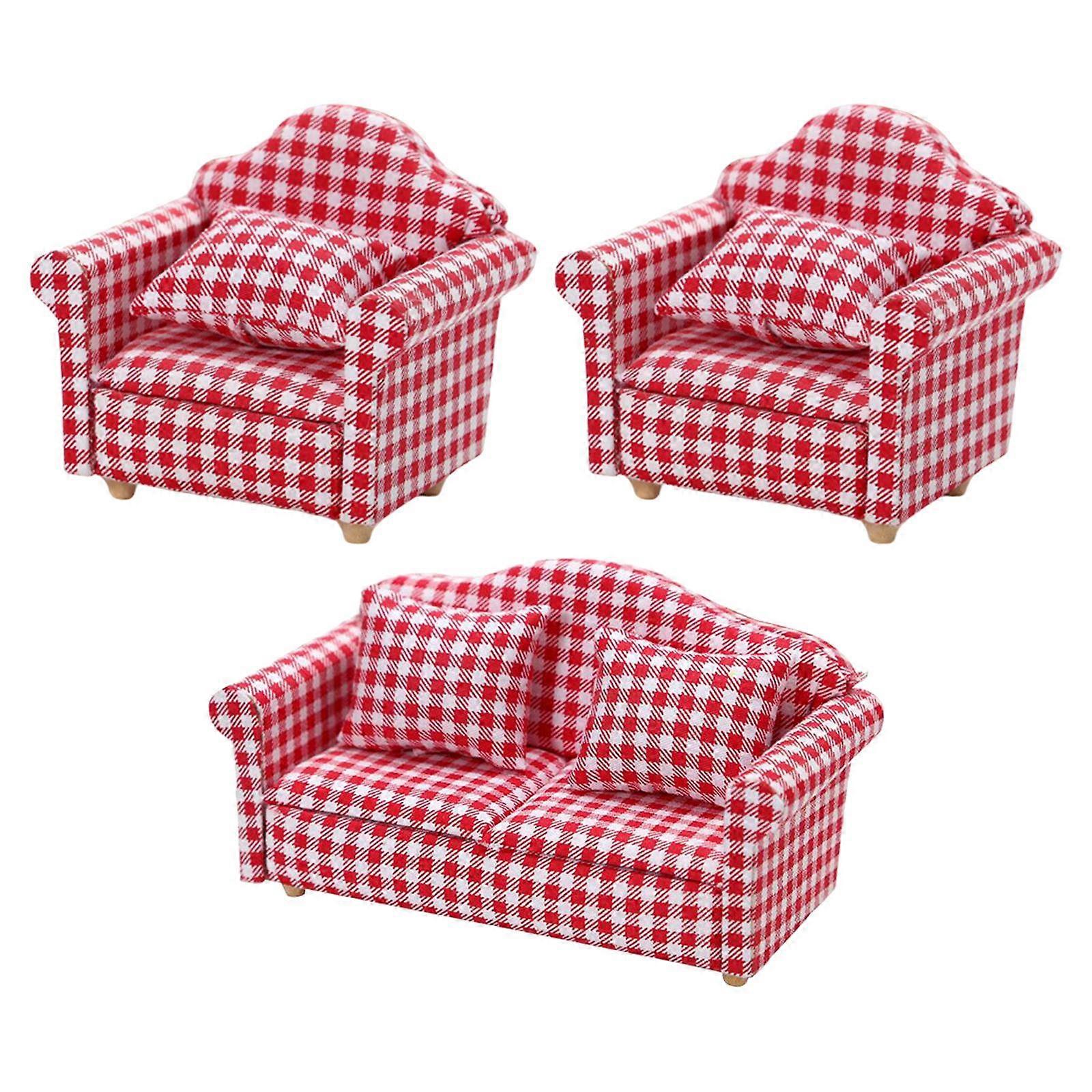 Dollhouse Sofa Armchair Miniature Model Red and White for Dollhouse Decor