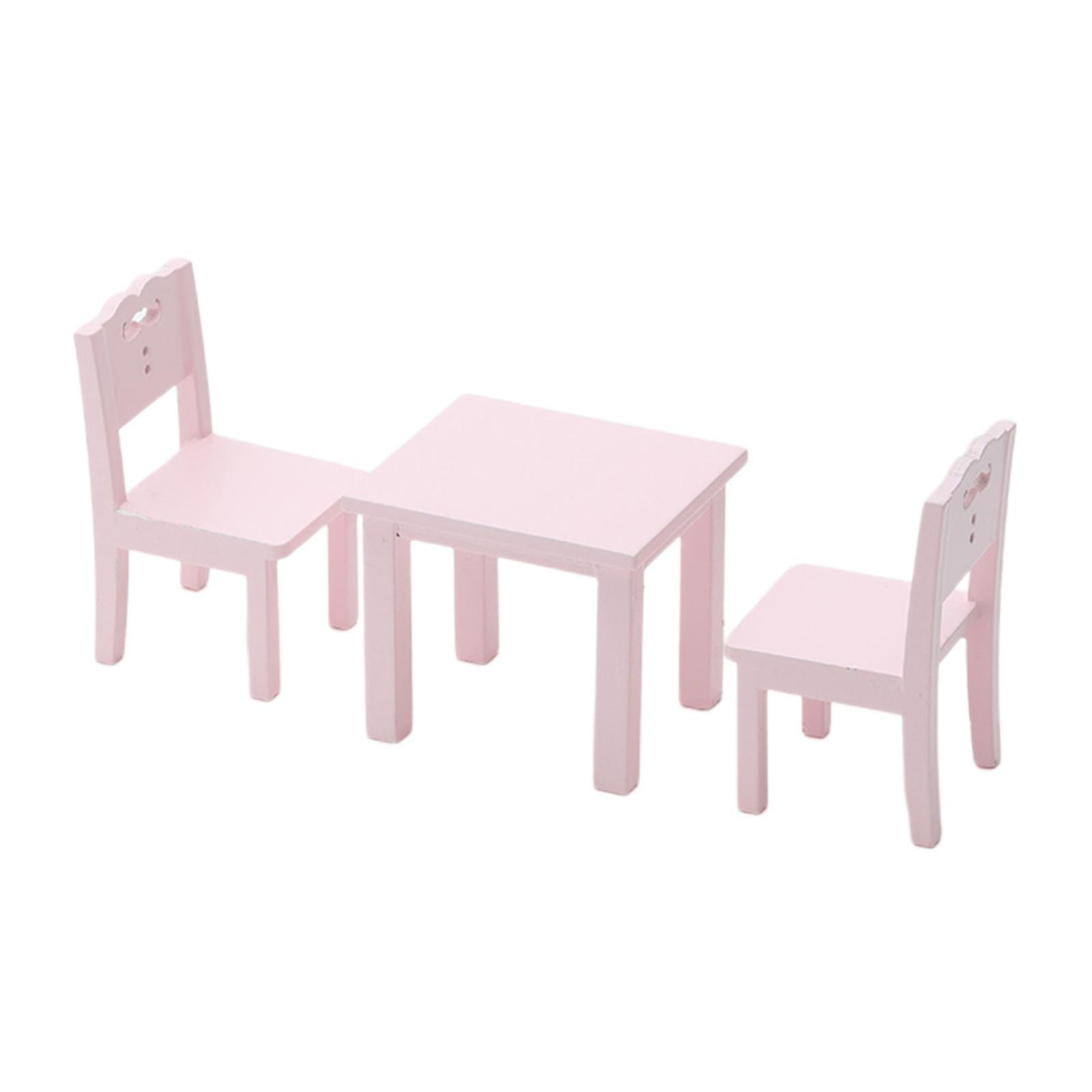Dollhouse Chair Miniature Furniture Wooden Dollhouse Decor Pink Chair Table