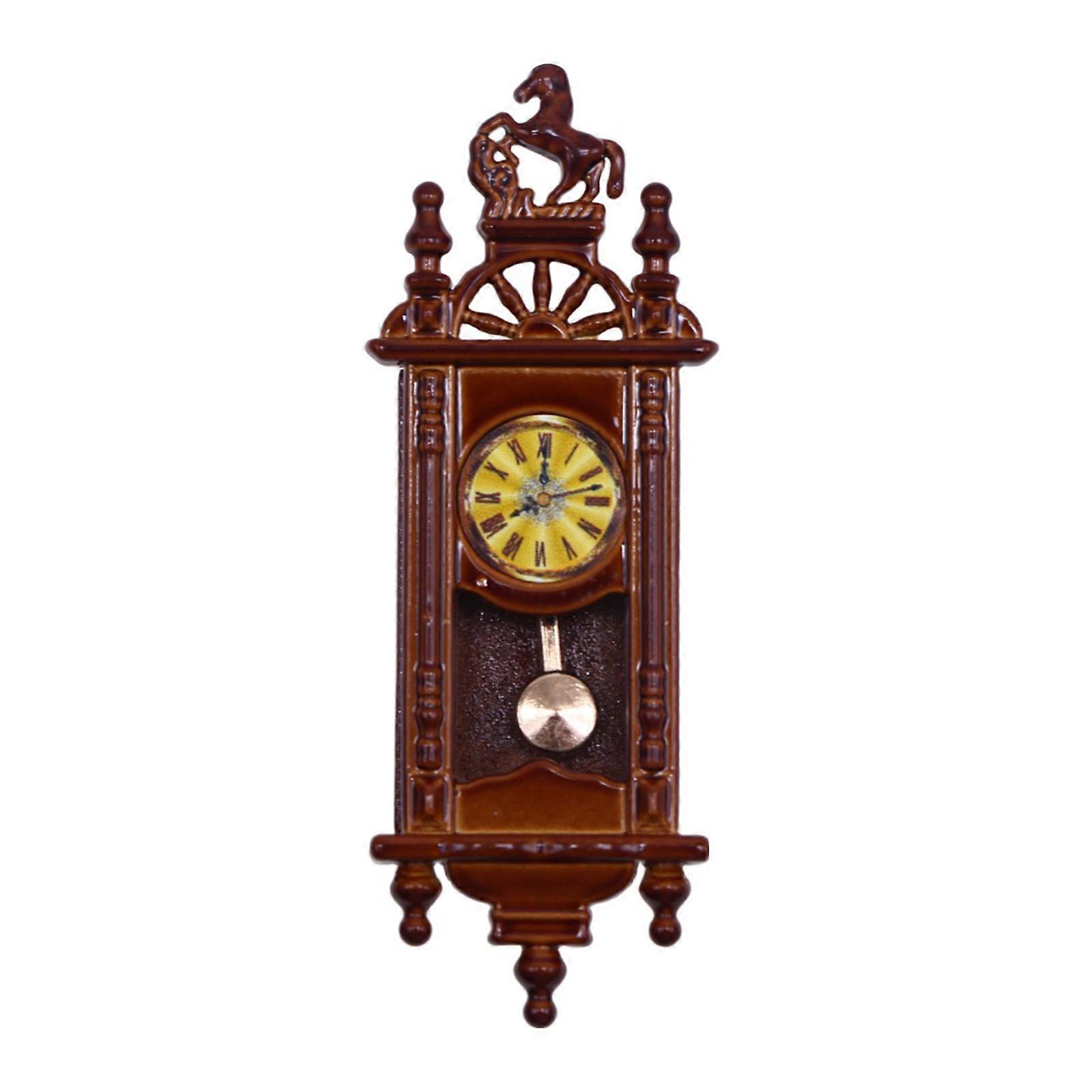 Vintage Hanging Clock Model for Dollhouse Decoration Miniatures Dolls House Wood Wall Clock Decor Decorative Pendant