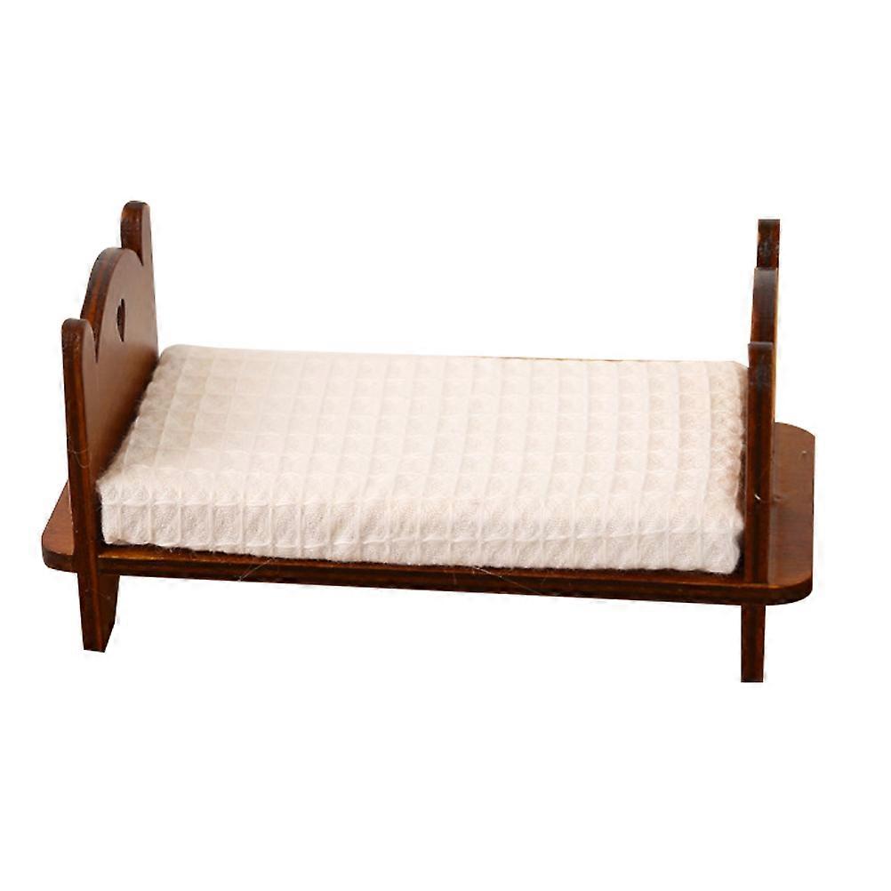 Vintage Wooden Single Bed with Bedding for Dollhouse Bedroom – Realistic Detailing, Compact Space Saving Design, Elegant Charm for Pretend Play