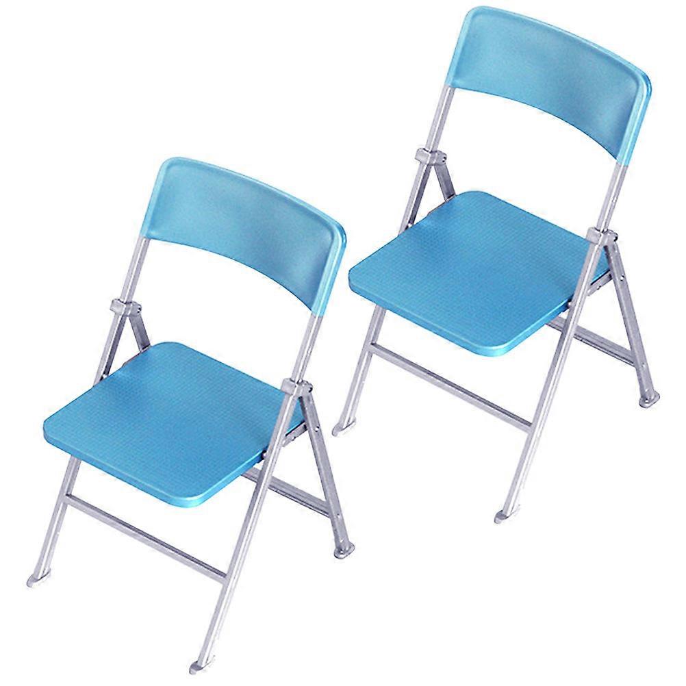 Miniature Furniture Mini Folding Chair For Doll House Home Decoration Blue 15.00X9.40X8.40cm Collectors 2Pcs