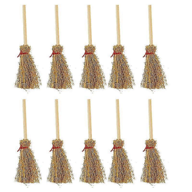 Dollhouse Miniature Broom, Mini Straw Broom Doll House Furniture Decor Witches Prop Broom Dollhouse Accessories Party Supplies(10 pcs, brown)