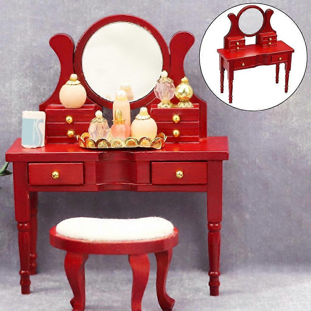 Dollhouse Miniature Furniture 1/12 Scale Red Kids Gilt Dressing Table Bedroom Decor