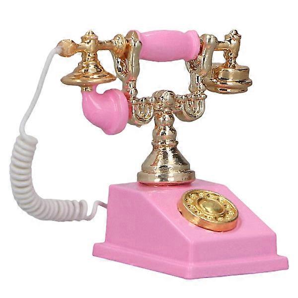 Dollhouse Mini Phone Model Retro Simulation European Vintage Telephone Model Decoration for 1:12 Dollhouse Pink