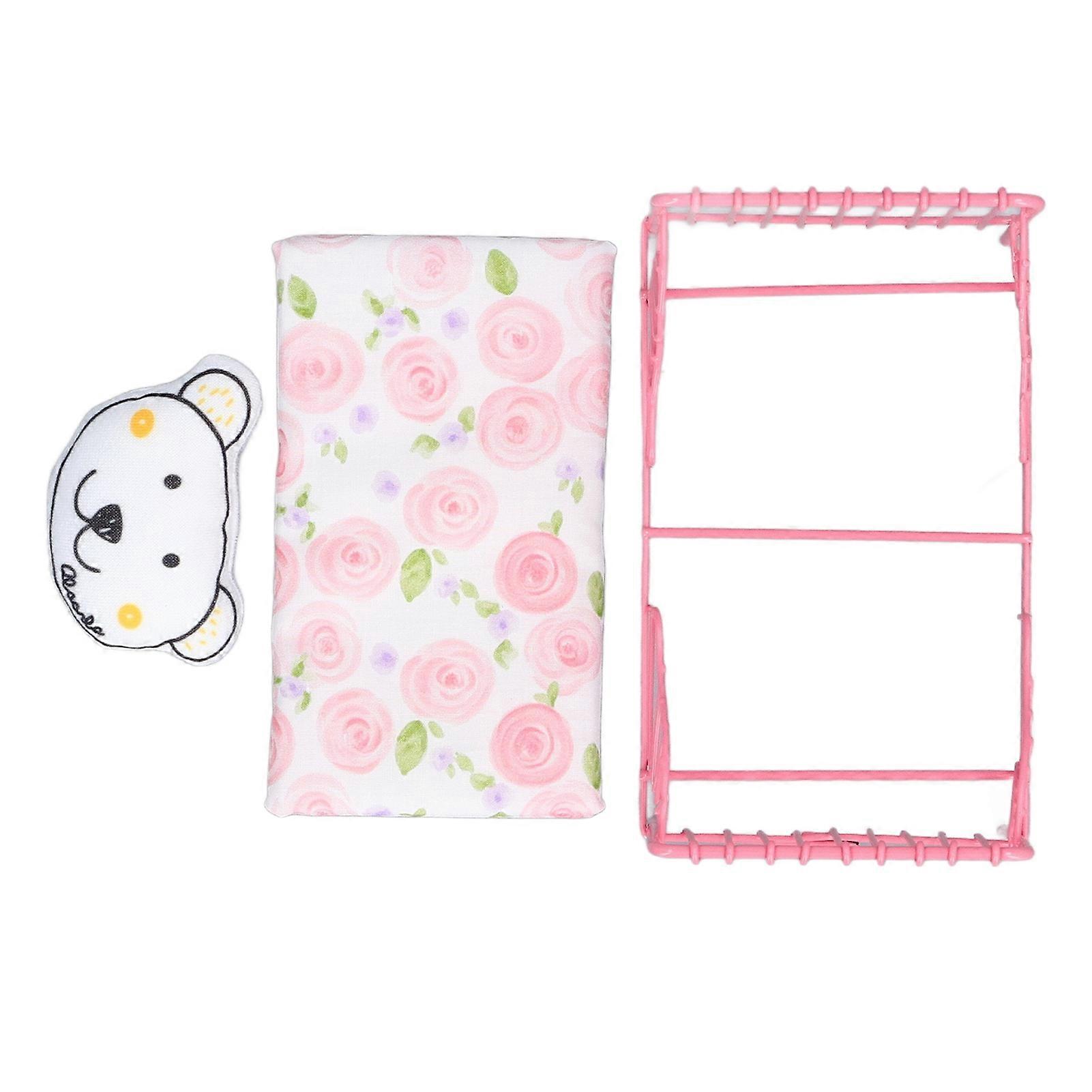 Dollhouse Metal Bed 1: 12 Doll House Miniature Furniture Bear Decoration for Bedroom Pink Pink Flower Pattern