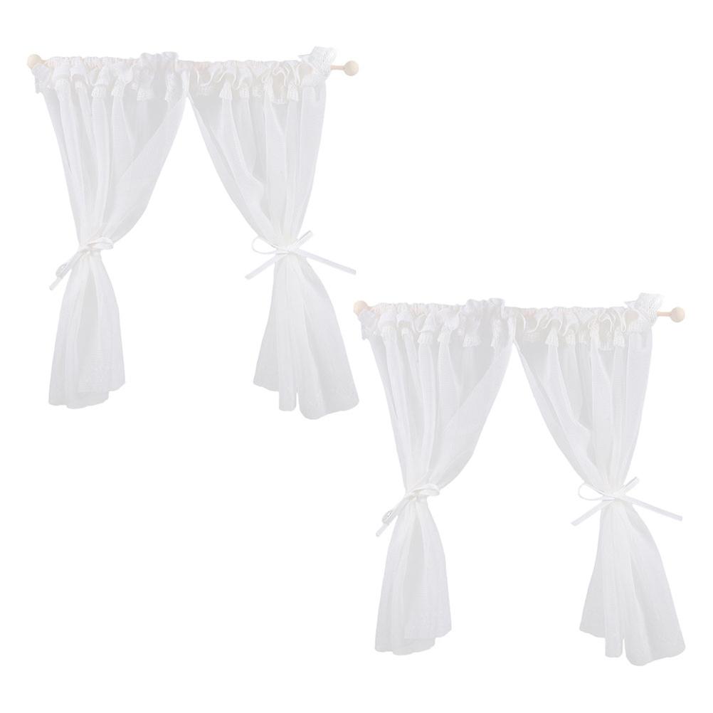 2pcs Miniature Lace Curtains for Doll Houses – Tiny Home Window Decor Accessory, White Cloth Drapes for Dollhouse Windows