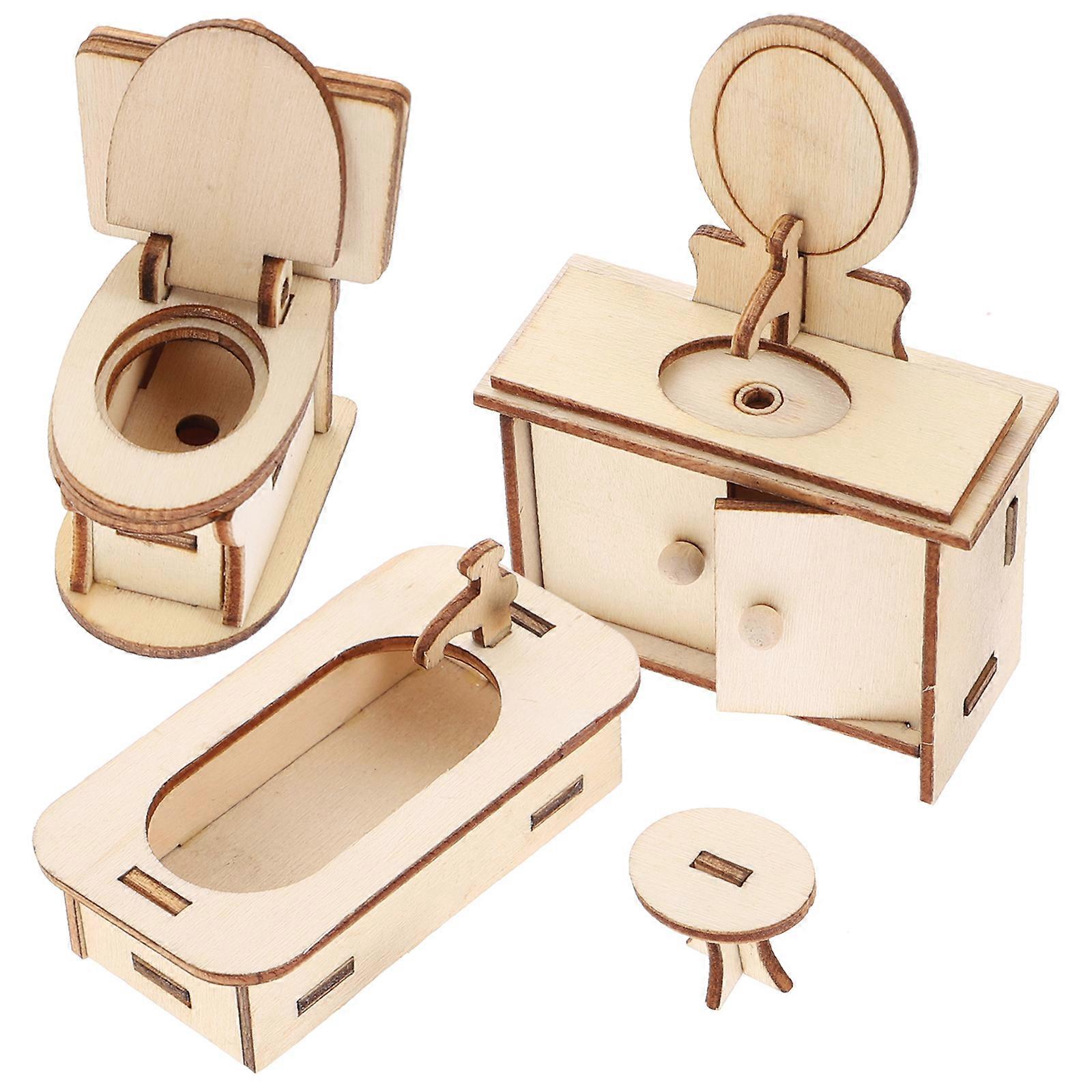 Toilet Toy 1Set Wooden Dollhouse Furniture for Kids Educational Play