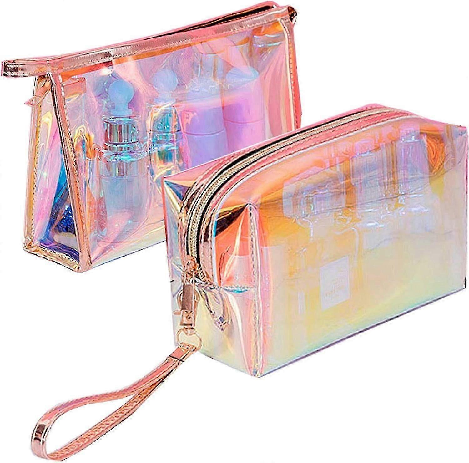 Toiletry Bag, 2 PCS Wash Bag Women, Clear Portable Soft TPU Travel Toiletry Bag, Fashion Colorful Bling Toiletry Bags for Women, Waterproof Travel Mak