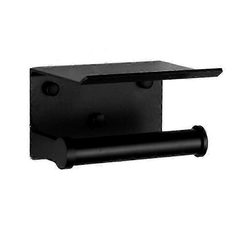 Toilet Paper Holder, No-Drill Wall Mount with Phone Shelf for Bathroom Kitchen - Black