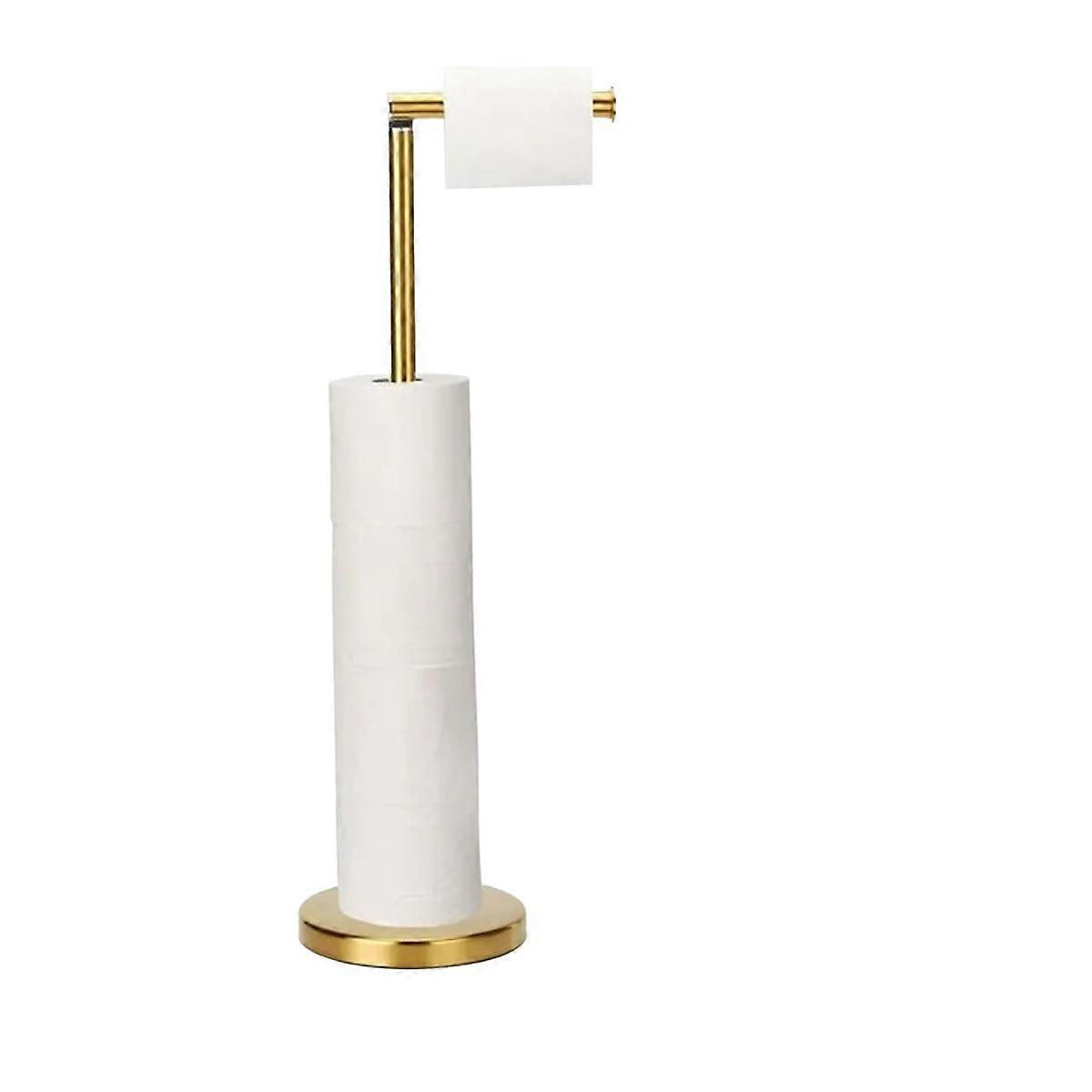 1. The freestanding toilet paper holder is made of stainless steel, ensuring durability and reliability. The elegant gold brushed finish matches your bathroom decor perfectly. 2. The sturdy stainless steel base is 5.9 inches in diameter and 0.8 inches thick. The base is weighted to prevent tipping. The toilet paper holder is 24 inches high. Its high height makes it convenient for you to access the paper whether you are on the toilet or using the sink. 3. The felt pads on the bottom of the base protect the floor from scratches and increase the sturdiness and stability of the toilet paper holder. 4. Extra toilet paper storage space. With the top head pivot, the part that holds the toilet paper folds down when holding the toilet paper, but can be flipped up, allowing you to easily add or remove extra rolls. The toilet paper holder can hold up to four extra toilet paper rolls. 5. Super easy to assemble, the package comes with a high-quality short-head screwdriver, and the product can be assembled in one minute in just two steps. You can keep the screwdriver for use with other items at home.