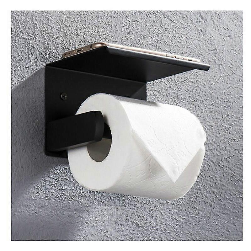 Toilet Paper Holder, Wall Mounted Toilet Paper Holder, with Cell Phone Storage Rack (Black)