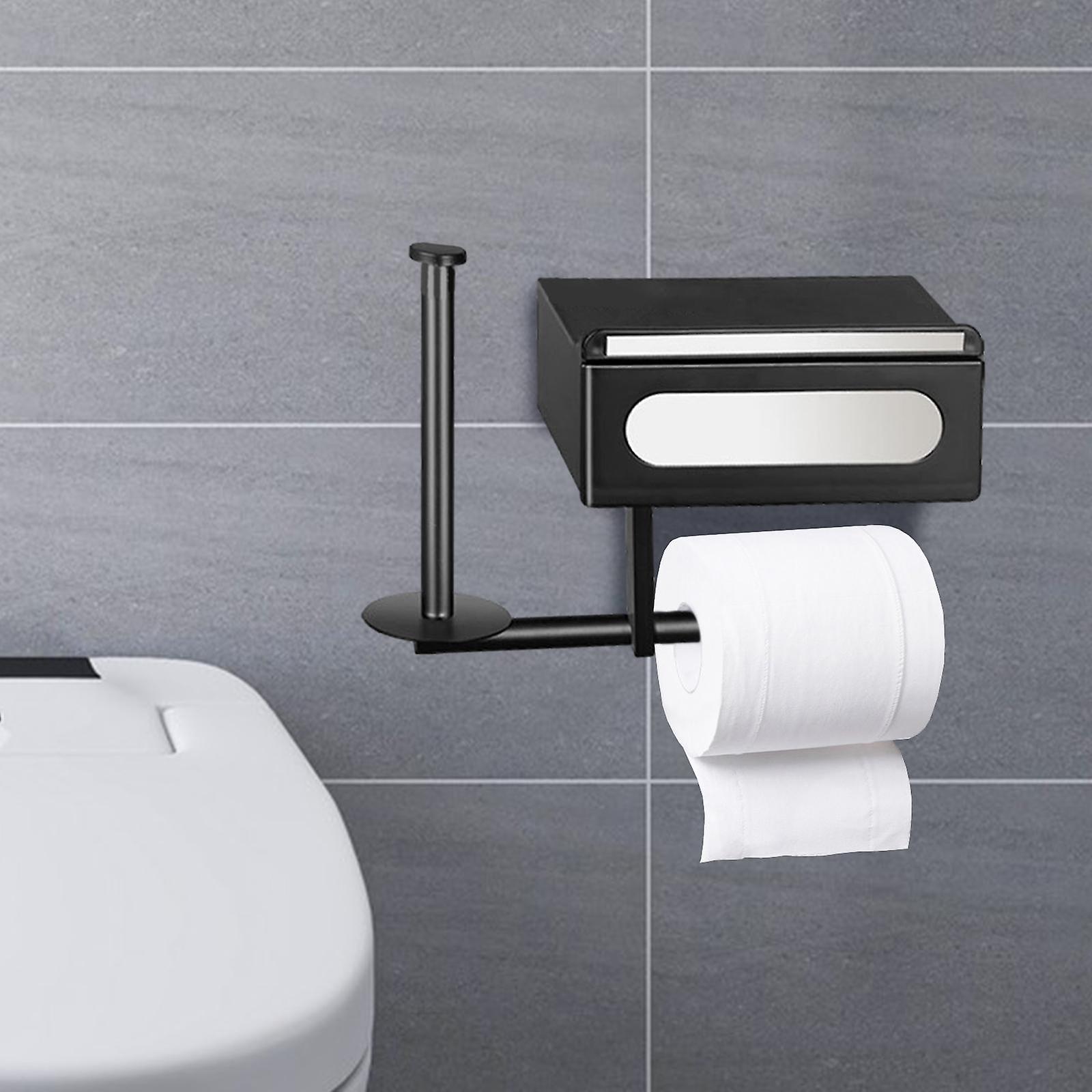 Description: Premium Material: The paper towel holder is made of quality and thick materials that can withstand the humid environment of your bathroom or kitchen.Toilet Paper Holder with Storage: Matte black toilet paper holder storage with built in organization provides discreet storage for wipe, tampons and personal products.Spacious Tray: With a spacious tray and front safe guardrail, the toilet tissue paper holder prevents accidental drops and holds a variety of items.Multi Functional: The toilet roll holder also serves as a toilet tissue holder with horizontal and vertical rods and a storage drawer box.Easy Installation: Installing the wall shelf paper holder is extremely easy, no need to drill holes, just need to be installed on the wall. Specification: Material: Metal Size Chart: 25cmx19.5cmx12.5cm/9.84inchx7.68inchx4.92inch Package Includes: 1Toilet Paper Holder with Storage Drawer Note: Please allow slightly errors due to manual measurement and different monitors.