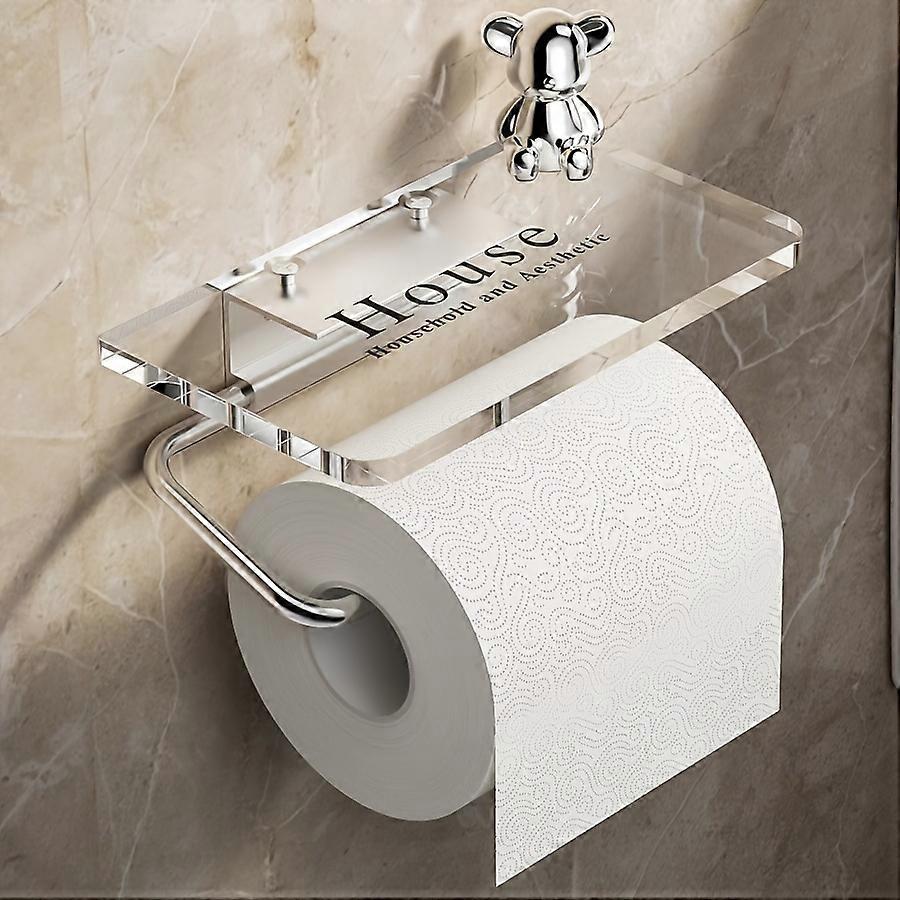 Hypoallergenic Acrylic Bathroom Shelf with Toilet Paper Holder - Wall Mounted Storage Rack, No Drilling Required, PVC Composition, Use without Power,