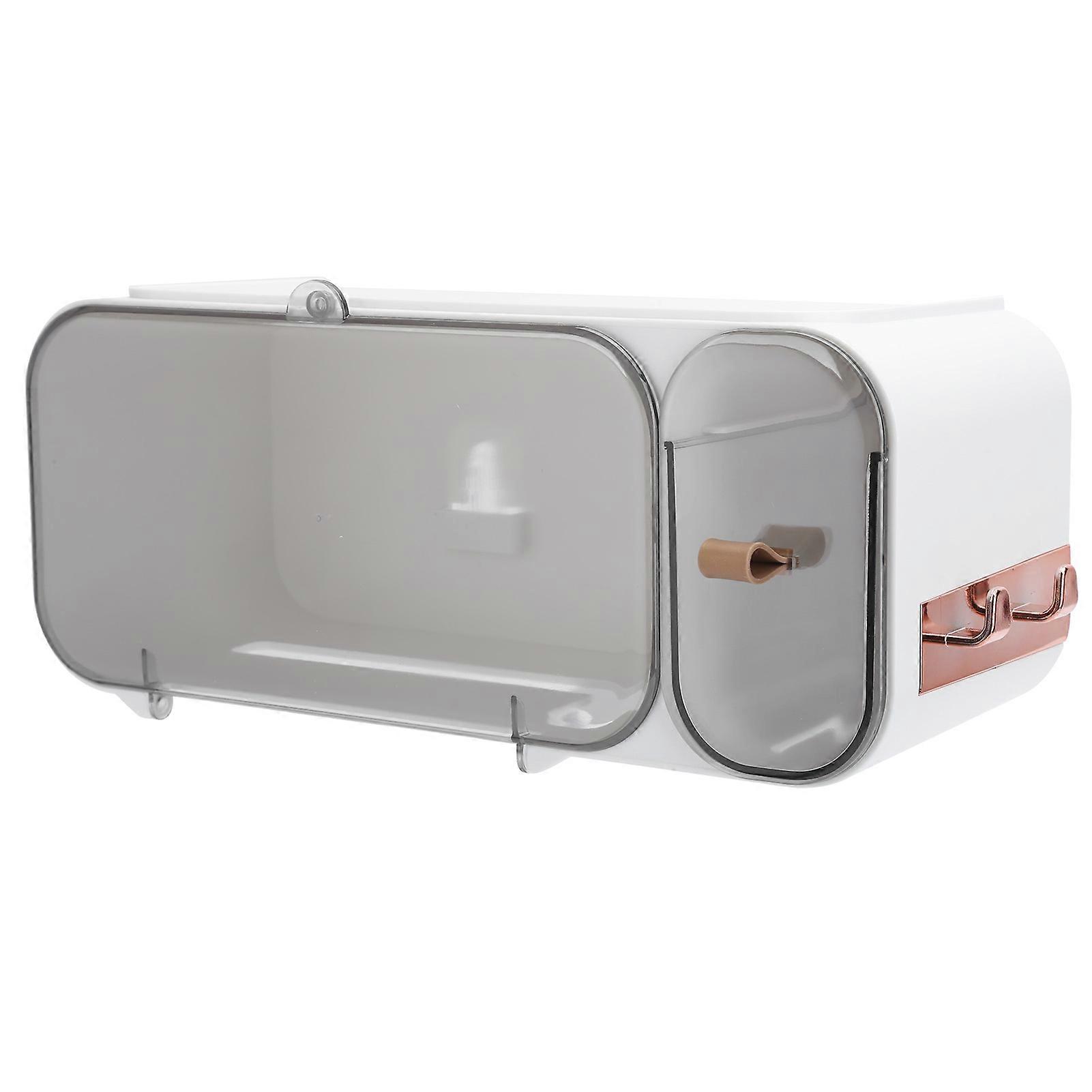 Toilet Paper Holder Wall Mounted Waterproof Roll Paper Storage Box Tissue Box Bathroom Userectangle White