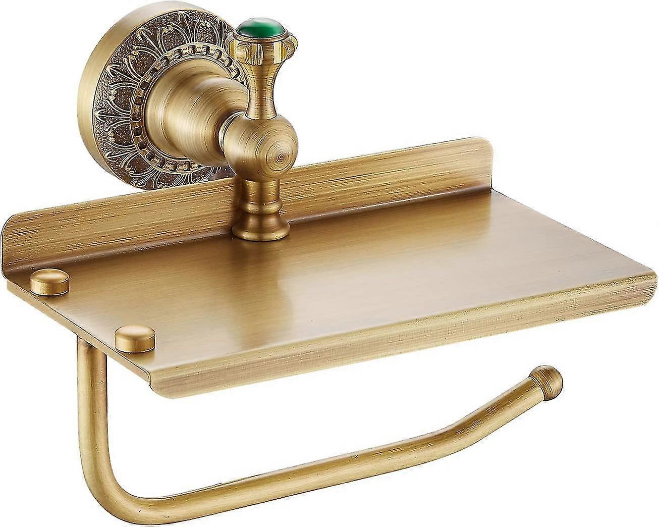 Toilet Paper Holder Solid Brass Wall Mounted Toilet Roll Holder, Toilet Paper Tissue Holder With Cell Phone Storage Shelf Antique Brass Finish
