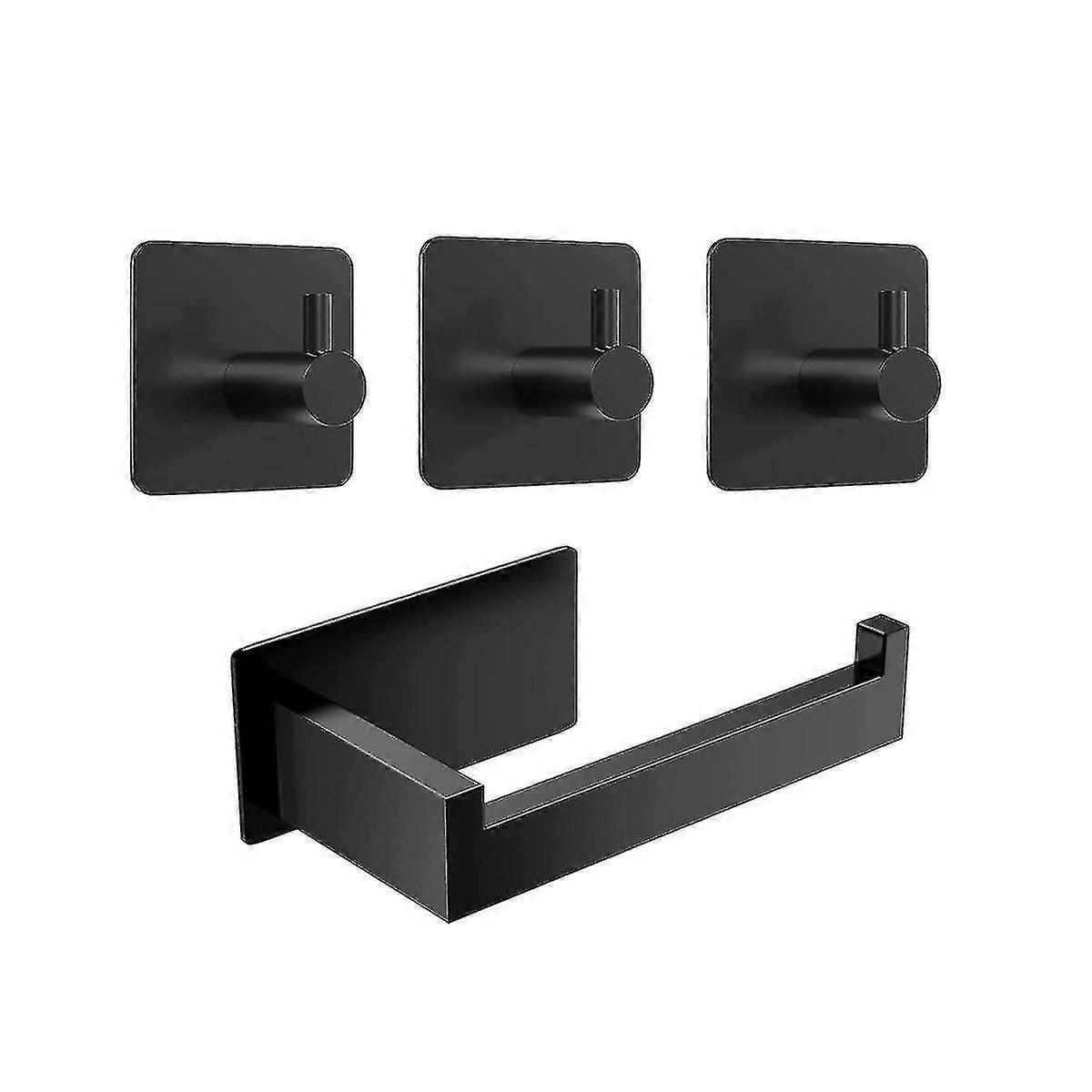 Toilet Paper Holder No Drilling Toilet Paper Holder Black 3 Towel Hooks Self-adhesive Stainless Ste