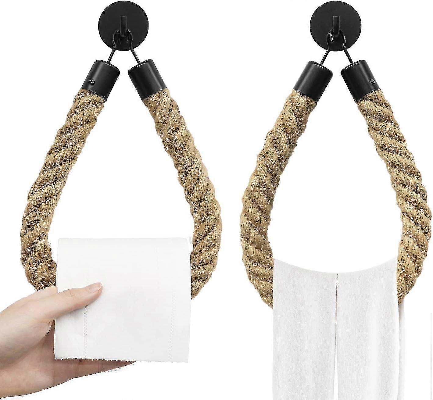 Vintage elegance ROLL HOLDERIndustrial design, beautiful and elegant, shows your unique taste and elegant style, can be used as decoration, can be used as a towel holder in the bathroom Toilet paper holderConsists of rope , jute twine and metal, rust resistant and anti-corrosion. Length of the rope: 60cm.our towel ring is the perfect bathroom decoration. EASY TO INSTALLToilet paper holder without drilling, self-adhesive hooks can be attached to tiles, doors, cupboards and walls, easy to use. You can hang a towel or a paper towel DURABLE MATERIALToilet paper holder Consisting of rope, jute rope and metal, rust and corrosion resistant, retro original environmentally friendly design, very environmentally friendly Width Application The retro toilet paper holder is very suitable for toilet walls, cabinets, suitable for most bathroom decorations, creating a natural and rustic style