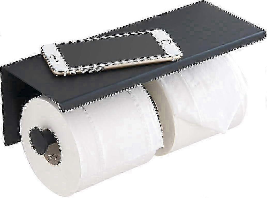 Toilet Paper Holder - Stainless Steel Toilet Roll Holder with Wall Shelf for Bathroom (Black, Double Head)