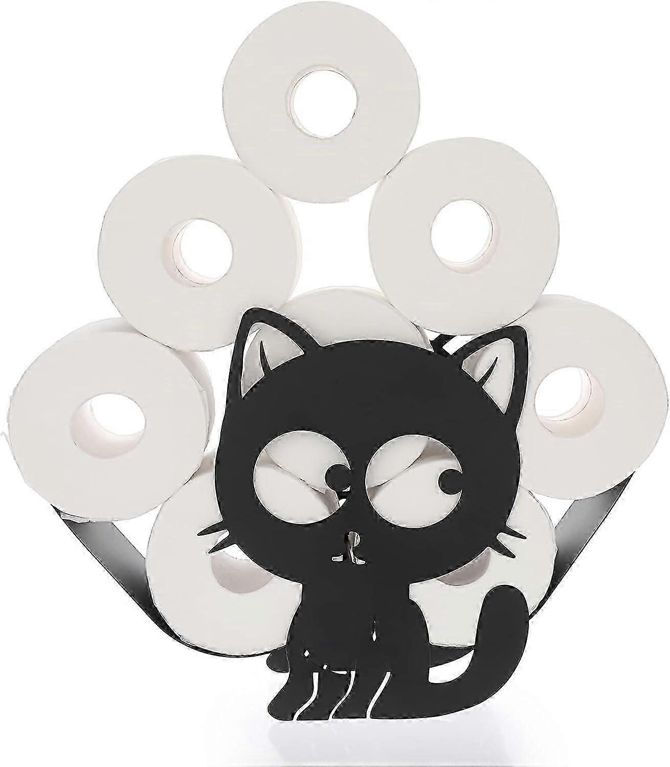 Toilet Roll Holder Metal Paper Holder Kitten Shaped Paper Storage for Bathroom (Black)