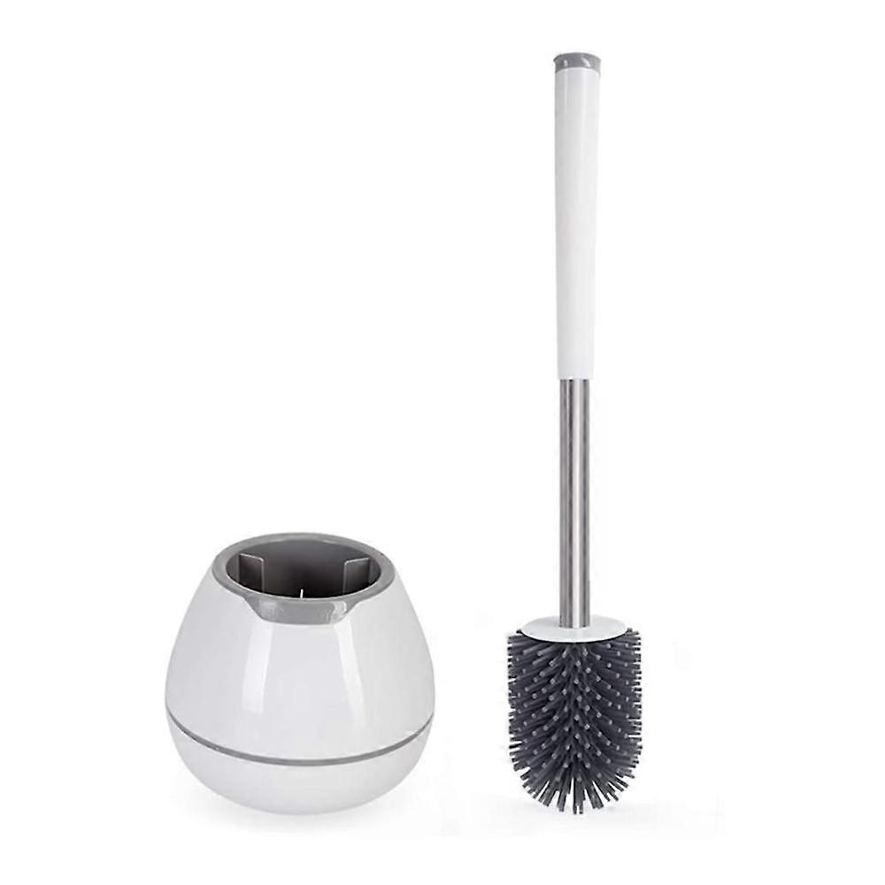 Toilet Brush and Holder Set, Silicone Bristles Bathroom Cleaning Bowl Brush Kit with Tweezers - White