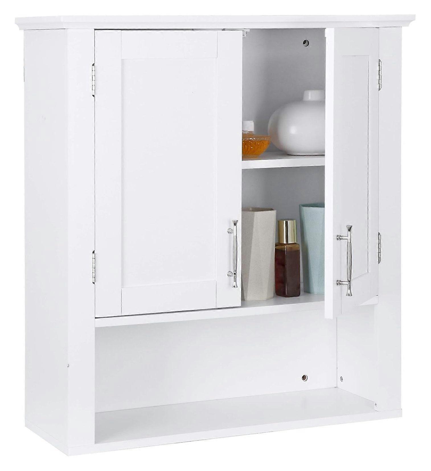 Zhongpeng Bathroom Wall Cabinet Over The Toilet, White Medicine Cabinet with 2 Doors and Adjustable Inner Shelves, for Bathroom, Living Room