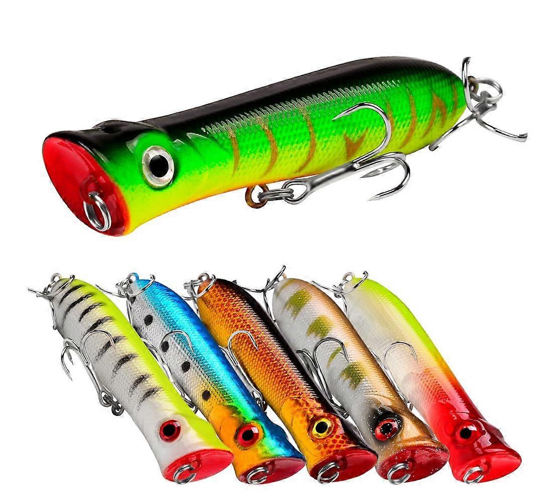 Topwater Popper Bass Fishing Lures Pack of 6 Rattle Baits for Trout and Saltwater 8CM 12g Durable Plastic