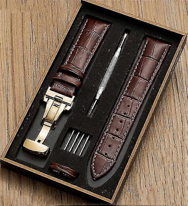 Top Layer Cowhide/watch Strap Butterfly Buckle Watch Accessories Gift Box Genuine Leather Watchband 12mm 14mm 16mm 18mm 20mm 22mm 24mm Wristwatch Band