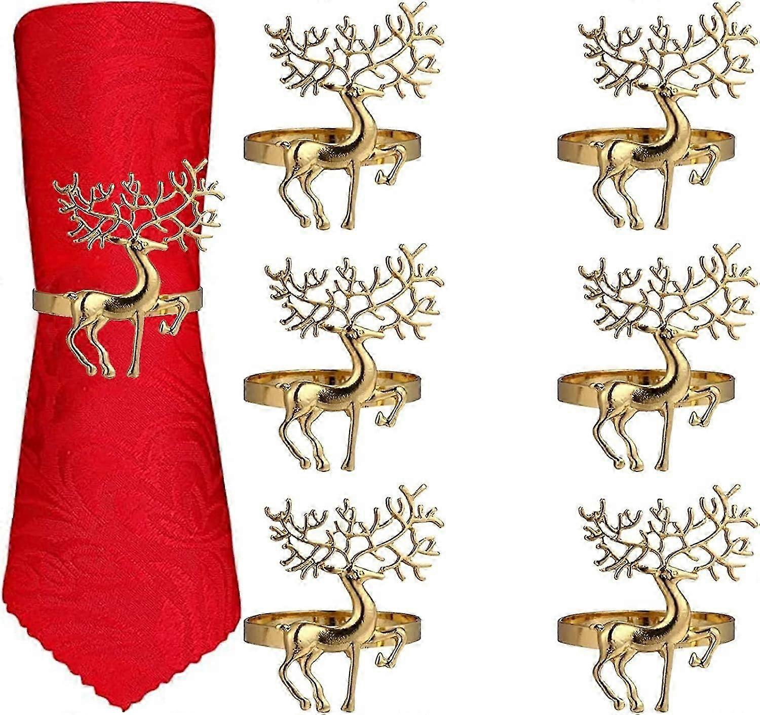 (Reindeer) (Gold) Christmas Napkin Rings - 6 Pcs Alloy Napkin Holders for Table Decor, Wedding, Xmas, Party Dinner