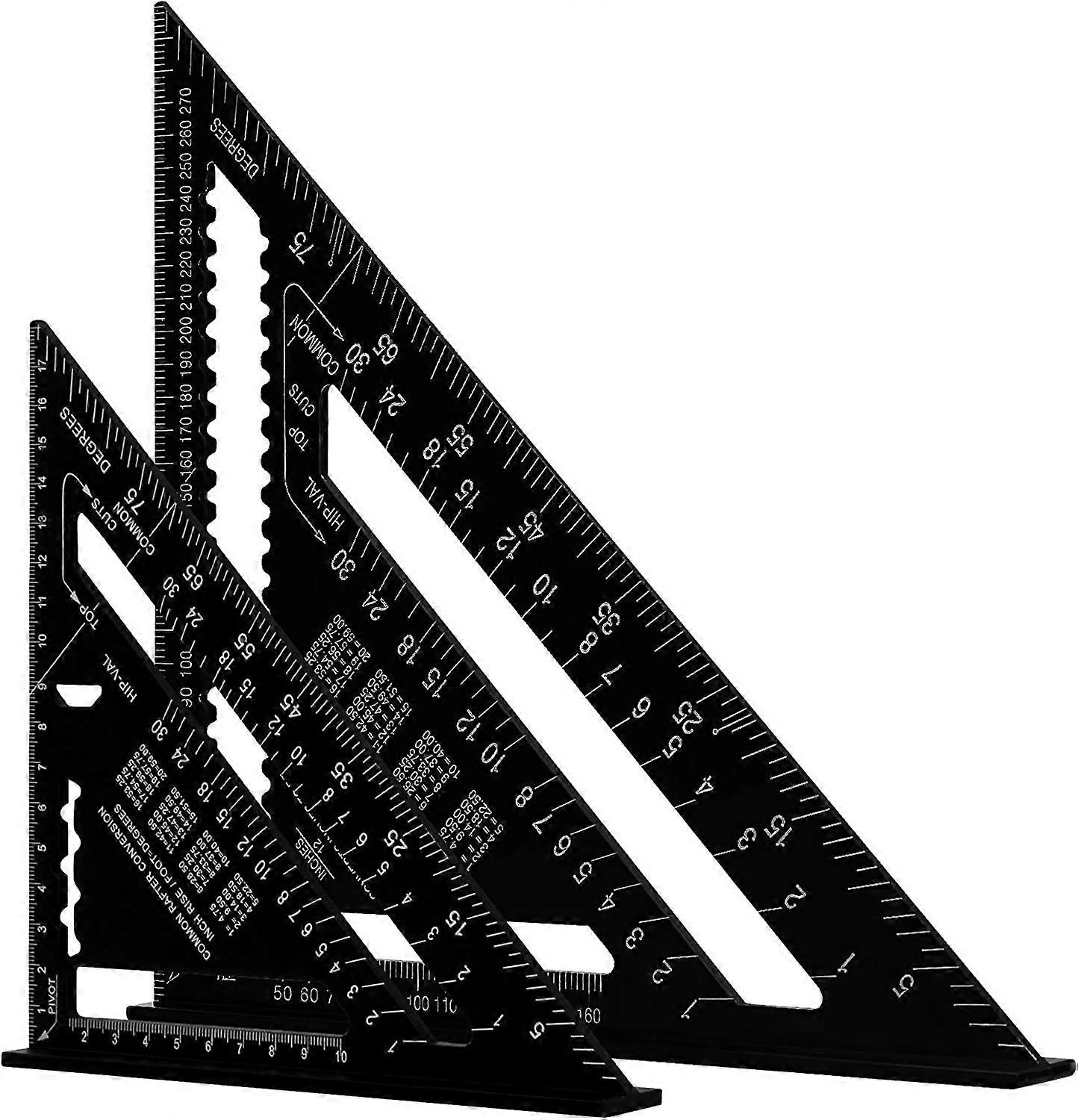 XIANQI Triangle Ruler,7 Inch and 12 Inch Triangle Ruler, Square Protractor , High Precision Aluminum Alloy Triangle Ruler,Layout Measuring Tool for Engineer Carpente Package includes: You will get two triangle rulers of 12 inches and 7 inches respectively. They have clear metric size, enough to be used for all construction and renovation projects, including woodworking enthusiasts, artists and DIY enthusiasts. Material: The carpenter square is manufactured of high quality aluminum alloy with black matte finish to prevent glare, corrosion resistant and durable, not easy to break. Unique design: Its thick edge can be used directly with the saw against the square for cross cuts or angled cuts using the etched protractor scale, let you quickly and accurately mark your cut lines on your stringers. Easy to use: The triangle ruler checking angles is quick and easy. with clear and accurate scale, easy for you to read. a wider base that provides stable grip on Wide application: The triangle ruler can be used as a protractor,miter,line scriber saw guide,framing square and a ruler,ideal for all building and remodeling projects Colour: Black Size: 17cm, 30cm Quantity delivered: 2 pieces