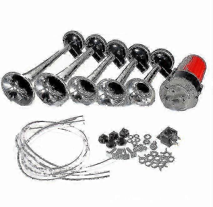 5 Trumpet Train Horn Kit For Trucks, Loud Train Horn Kit, Air Horn Compressor For 12v Vehicles Trains Boats Vans