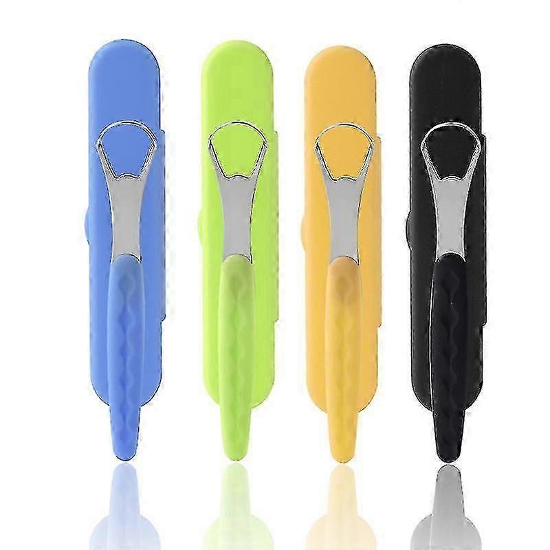 Tongue Scraper With Travel Case, Stainless Steel Tongue Cleaner For Adults Kids Fresh Breath Restoring Flavor (4 Pieces - Multicolor)