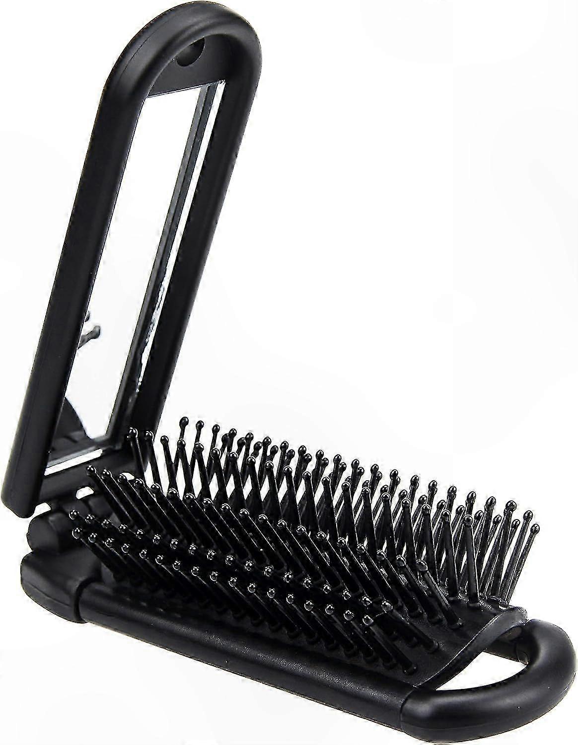 Compact Foldable Hair Brush with Mirror for Travel Gym Bag Use Black Portable Design