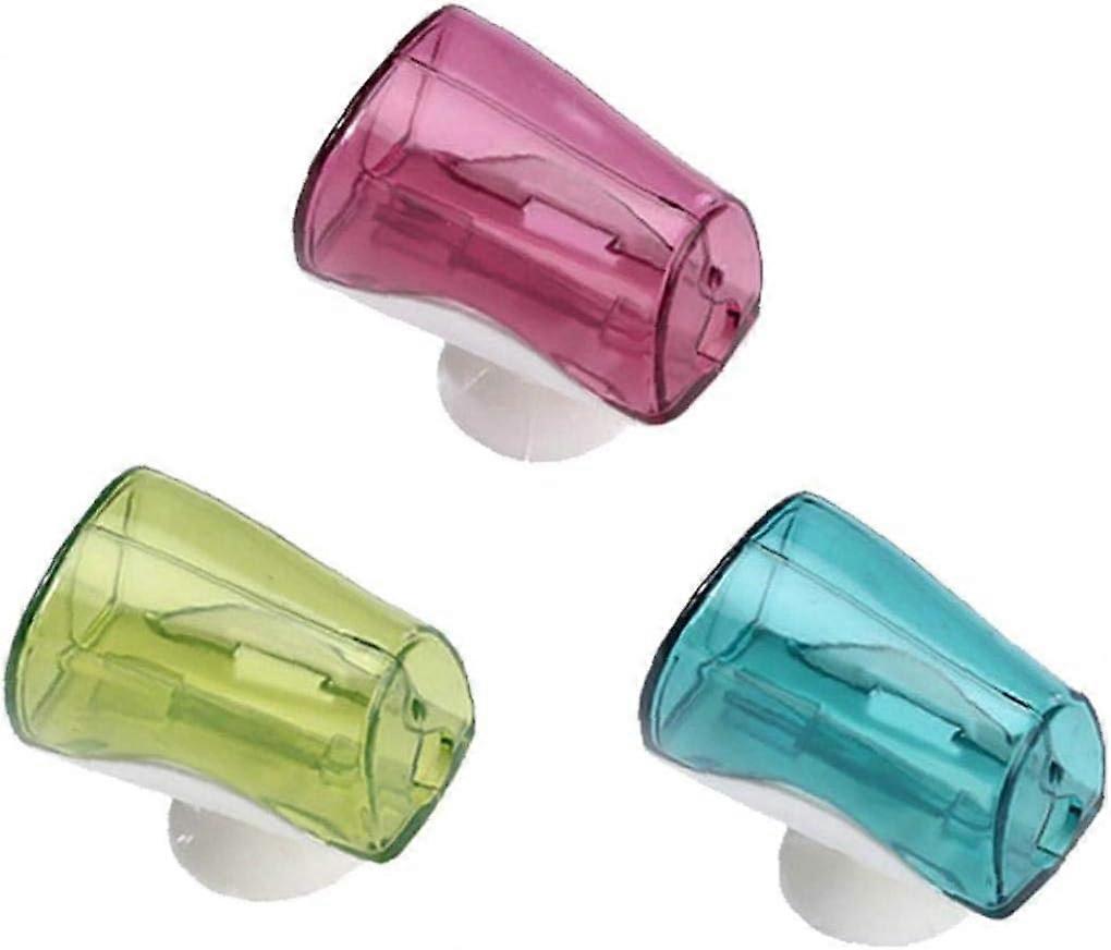 Travel Toothbrush Holder Case Wall Mount Suction Cup Tooth Brush Hanger With Anti Dust Cover blue+pink+green)( 3 Pcs/Set)