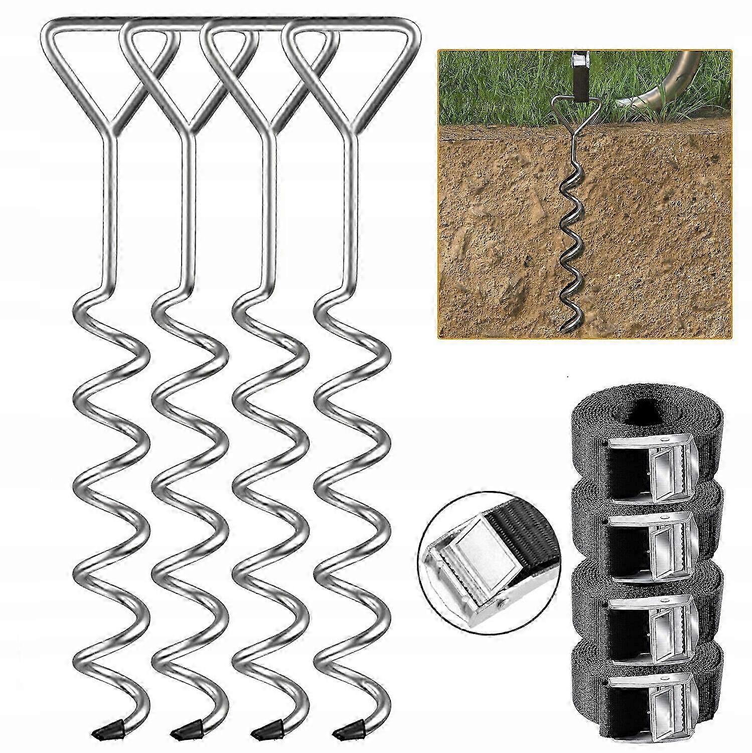 It is characterized by reliable materials: 4 durable spiral anchors do galvanized iron substrate and 4 tear-resistant polyester strips with ABS plastic buckles create this fastening kit that ensures safety when jumping on a trampoline Adjustable and small but strong: each polyester tape has a length of 2,5 m, so it can be individually adjusted according to your needs. Winner in the fight against wind: while thick branches are already dangerously swaying in the wind, these do substrate mounts and polyester webbing with buckles hold everything resistant to riveting and nails, even at wind strength 5-6 This helps you avoid flying trampolines: don't let trampolina fly do your neighbors' garden. With our mounting kit, it always stays in place What you get: set of do fastening consisting of 4 spiral anchors do substrate and 4 polyester strips. Suitable not only do trampolines, but also do swings, greenhouses, tents, slides dla children, towers do fun, etc. Specification: Anchor material: galvanized steelliandgt Anchor size:40 cm longliandgt Number of revolutions:5liandgt Strap material: 100 percent polyesterliandgt Strap size:2,5 m long, 2,4 cm wideliandgt Bearing capacity:do 900 kgliandgt Material of buckle: metalliandgt Included: 4X Anchor do Substrates 4X polyester strips